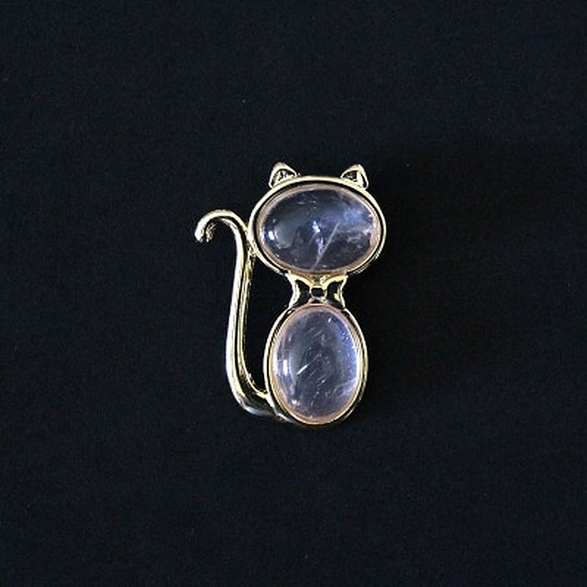 Pingente Semi Jóia Folheado a Ouro Gato com Pedra Natural Quartzo Rosa